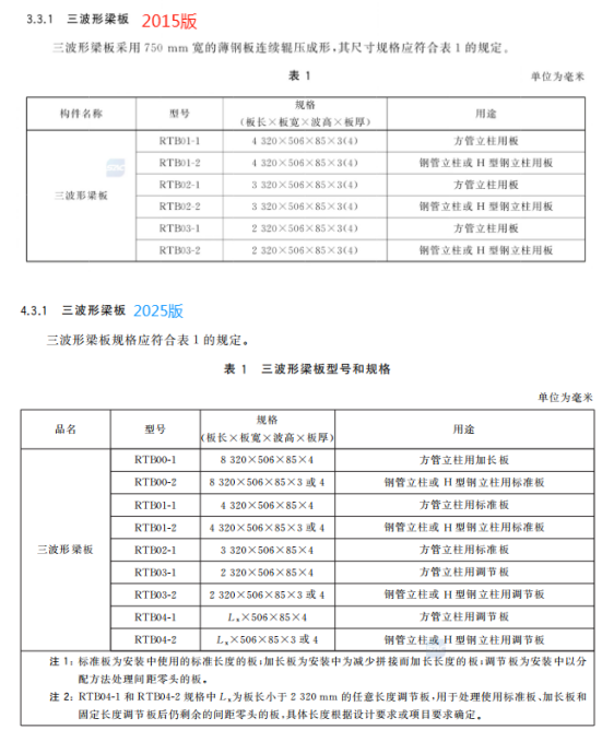c) 更改了三波形梁板用途、型號和規格(見4.3.1,2015年版的3.3.1);
