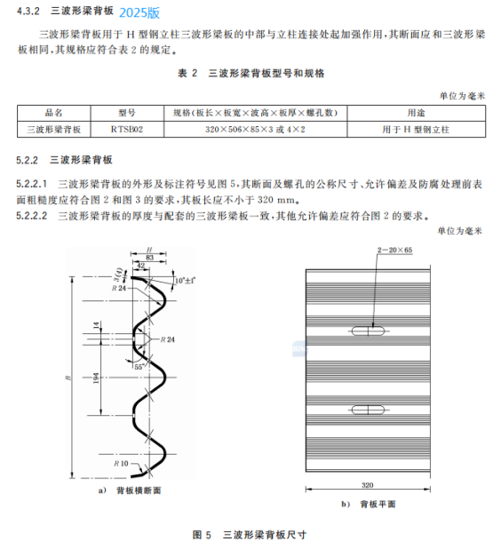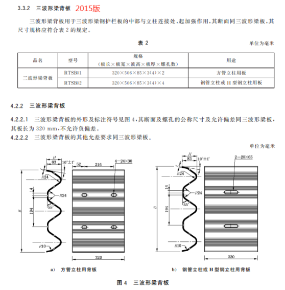 d) 更改了三波形梁板背板的用途、規格、尺寸和允許公差(見4.3.2、5.2.2,2015年版的3.3.2、4.2.2);