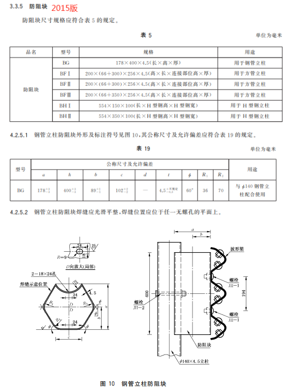 f) 更改了鋼管立柱防阻塊的用途、規格、尺寸和允許公差(見4.3.5、5.2.5.1、5.2.5.2,2015年版的3.3.5、4.2.5.1、4.2.5.2);
