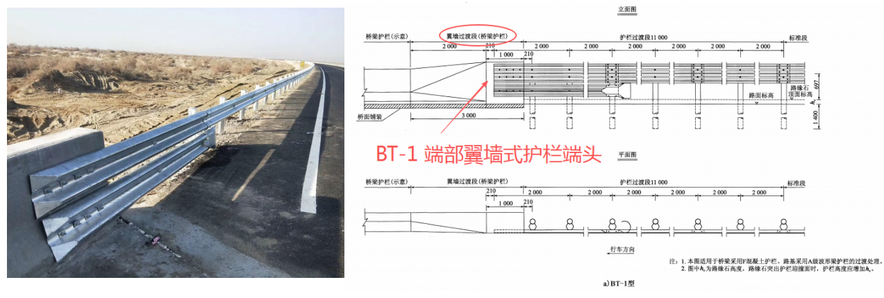 BT-1混凝土護欄與波形護欄過渡段——端部翼墻式: