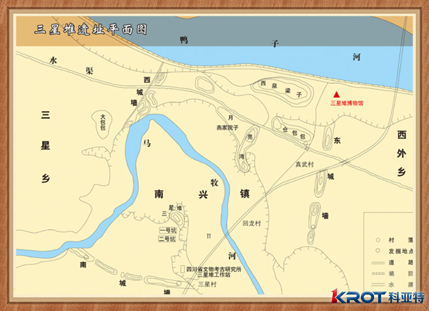 三星堆古遺址分布面積12平方公里,距今已有5000至3000年歷史,是迄今在西南地區發現的范圍最大、延續時間最長、文化內涵最豐富的古城、古國、古蜀文化遺址?,F有保存最完整的東、西、南城墻和月亮灣內城墻。三星堆古遺址被稱為20世紀人類最偉大的考古發現之一,昭示了長江流域與黃河流域一樣,同屬中華文明的母體,被譽為“長江文明之源”。